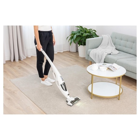 Sencor SVC 7811WH porzsák nélküli álló porszívó. Ideális választás a lakás takarítására. Bármilyen felületen használható, padlótól kezdve a bútorokig. A 180°-ban elfordítható szívófej a nehezen hozzáférhető helyeket könnyen elérhetővé teszi. A működését egy 11,1 V, 2200mAh Li-Ion akkumulátor biztosítja, amellyel a porszívó akár 25 percig is üzemeltethető. A szívóerőt az elektromos szabályzó segítségével állíthatja