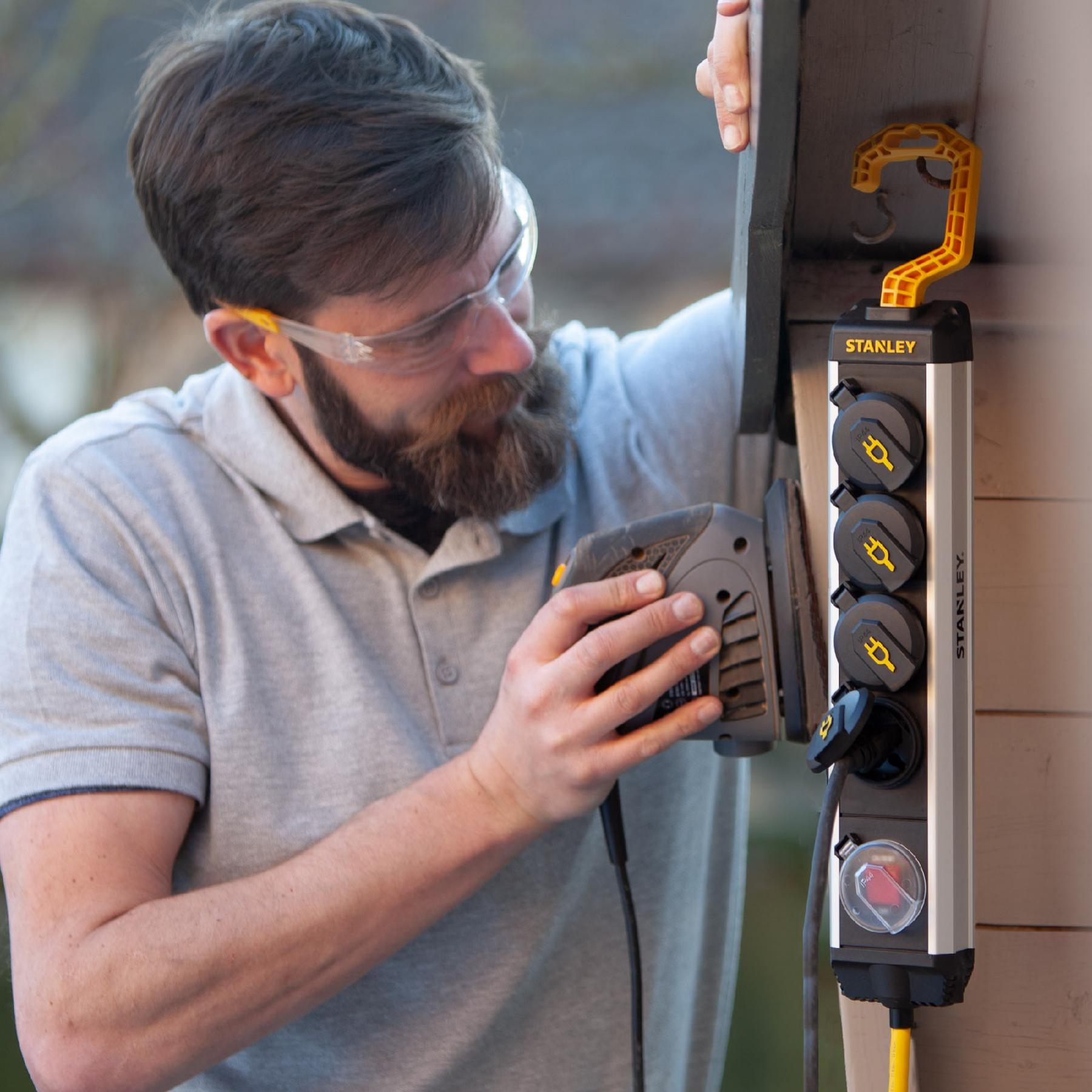A STANLEY 4-es hálózati elosztó kapcsolóval, felakasztható kivitelben készült, ezzel is megkönnyítve a használatot. A STANLEY hálózati elosztó alumínium háza masszív és robusztus kialakításának köszönhetően hosszú élettartamú lesz akár az építőiparban vagy otthoni alkalmazás során. Elsősorban szakembereknek ajánljuk, rendszeres használat mellett is. Az 5 m-es vezeték feltűnő sárga színű a jó láthatóság érdekében. IP 44-es védelemmel ellátott.