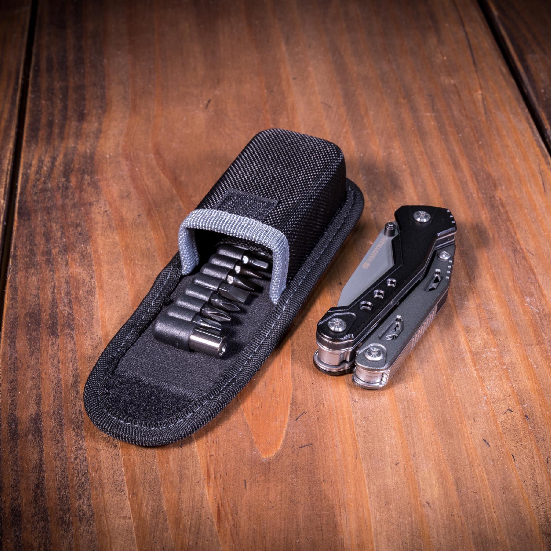 A Handyone TU181 szerszámok között megtalálható a rugós, rozsdamentes harapófogó, drótvágó, többféle csavarhúzó – lapos és csillagfejű változatokban –, fűrész, sörnyitó, és egy 7 cm hosszúságú fogazott penge. A készlethez tartozik egy mágneses bitfej tartó is, mely 9 különböző bitfejjel van ellátva, beleértve a Phillips, lapos fejű és hatlapfejű bitfejeket, így biztosan minden csavarhoz megtalálja a megfelelőt.