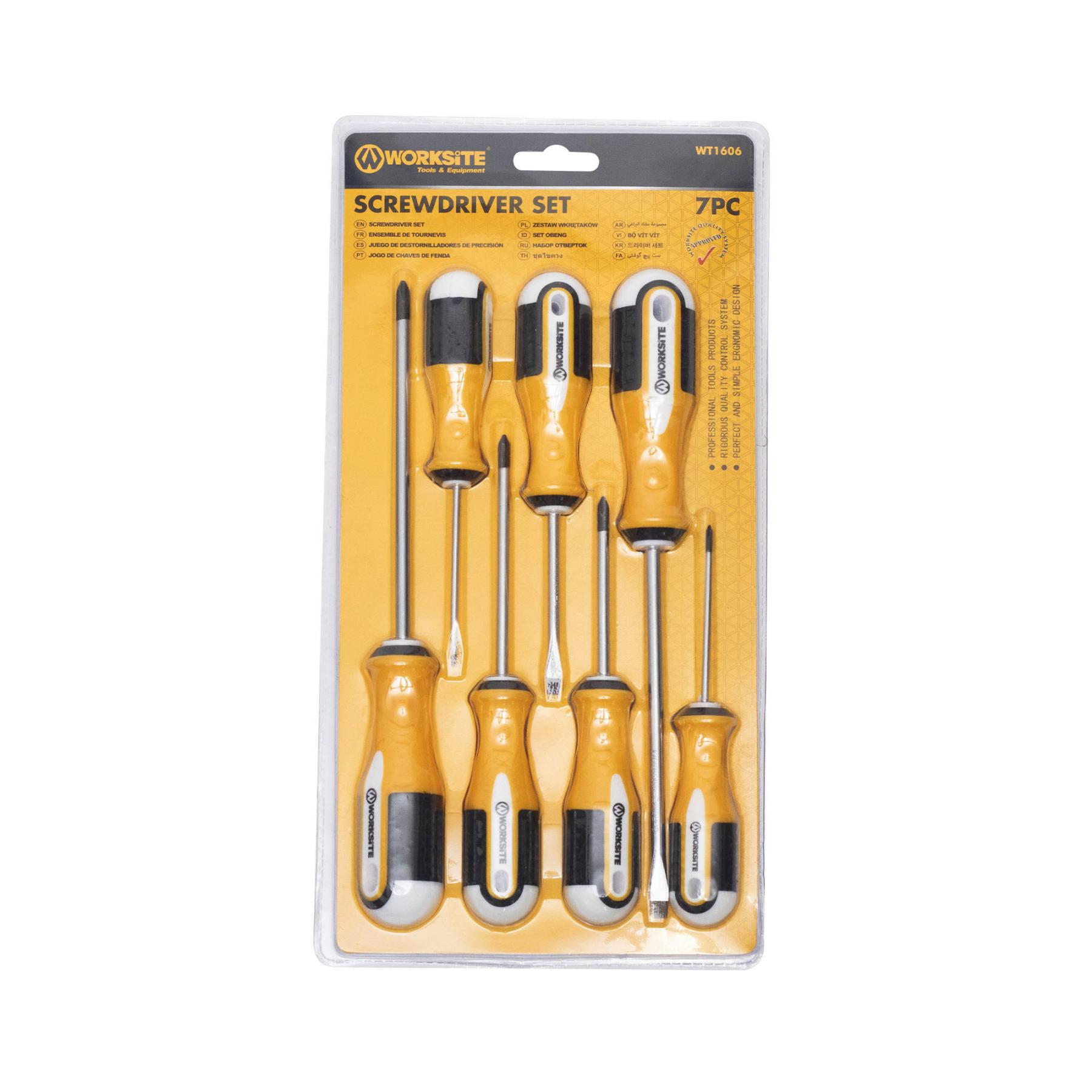 WORKSITE WT1606 csavarhúzó készlet, 7db, lapos és Phillips csillag fejek, mágneses, edzett